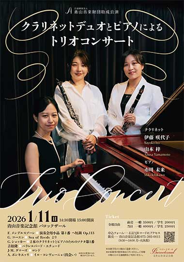 出演者 | 伊藤咲代子(クラリネット) 山本梓(クラリネット) 市川未来(ピアノ) |