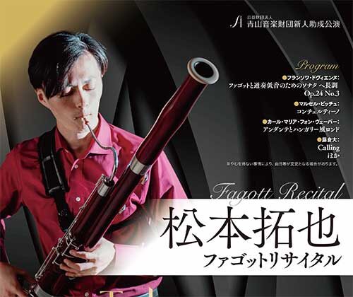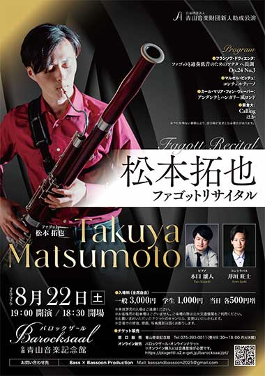 | 出演者 | 松本拓也(ファゴット) 木口雄人(ピアノ) 井垣旺士(コントラバス) |